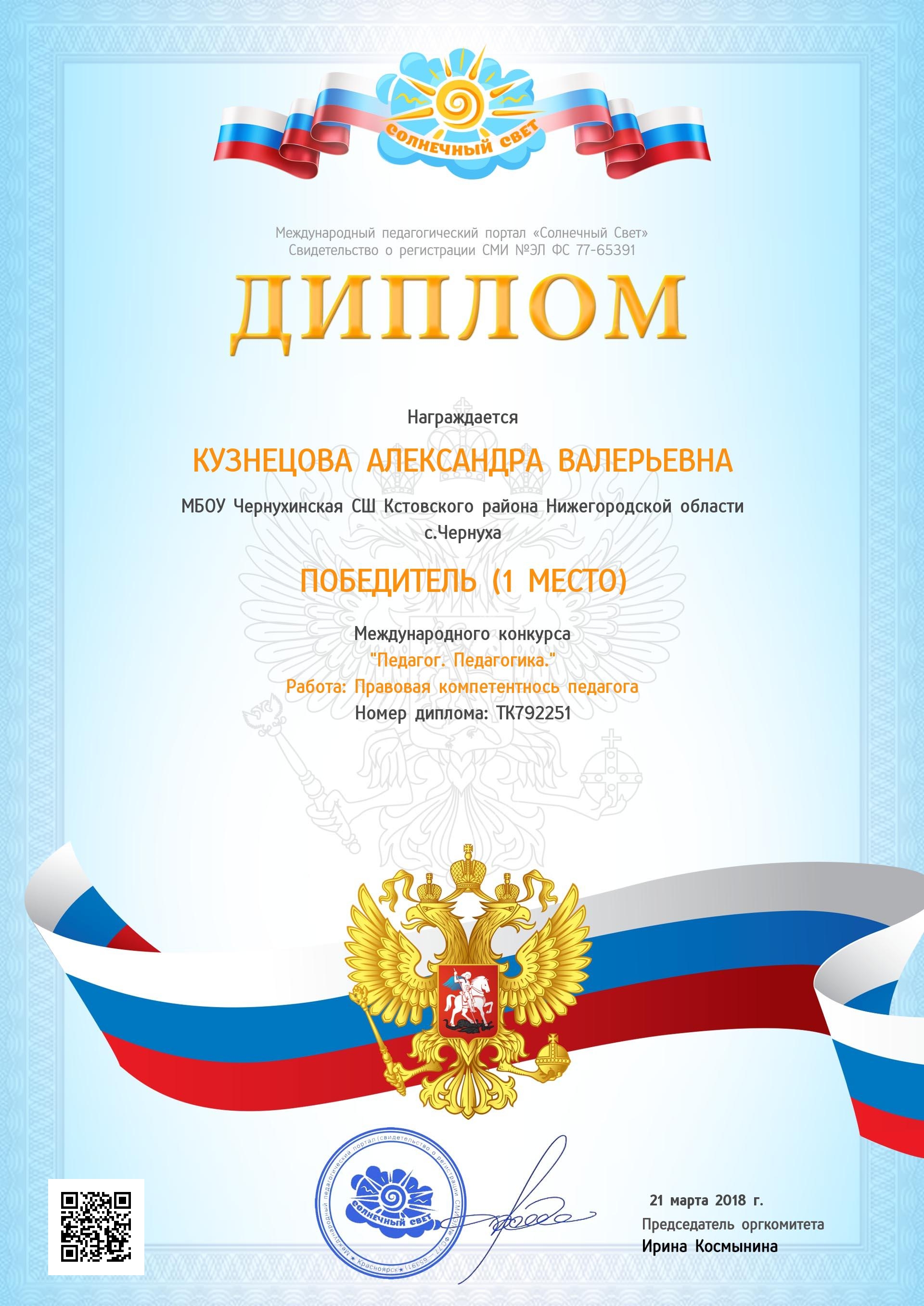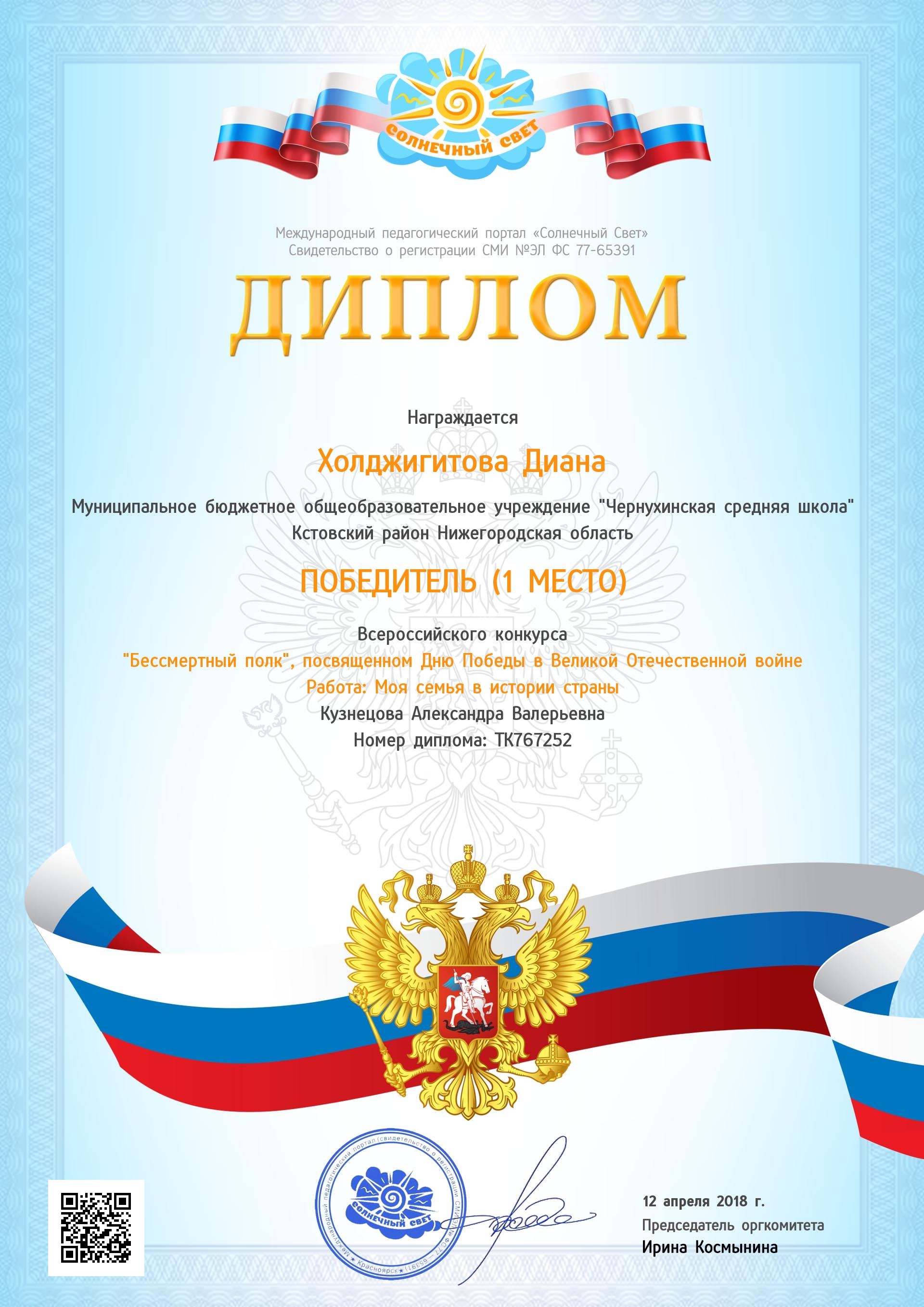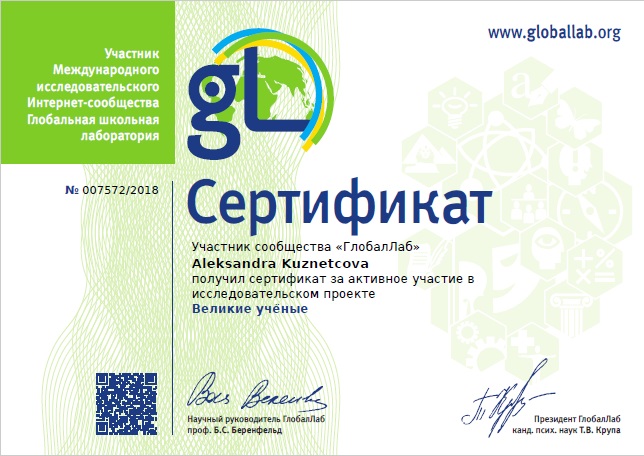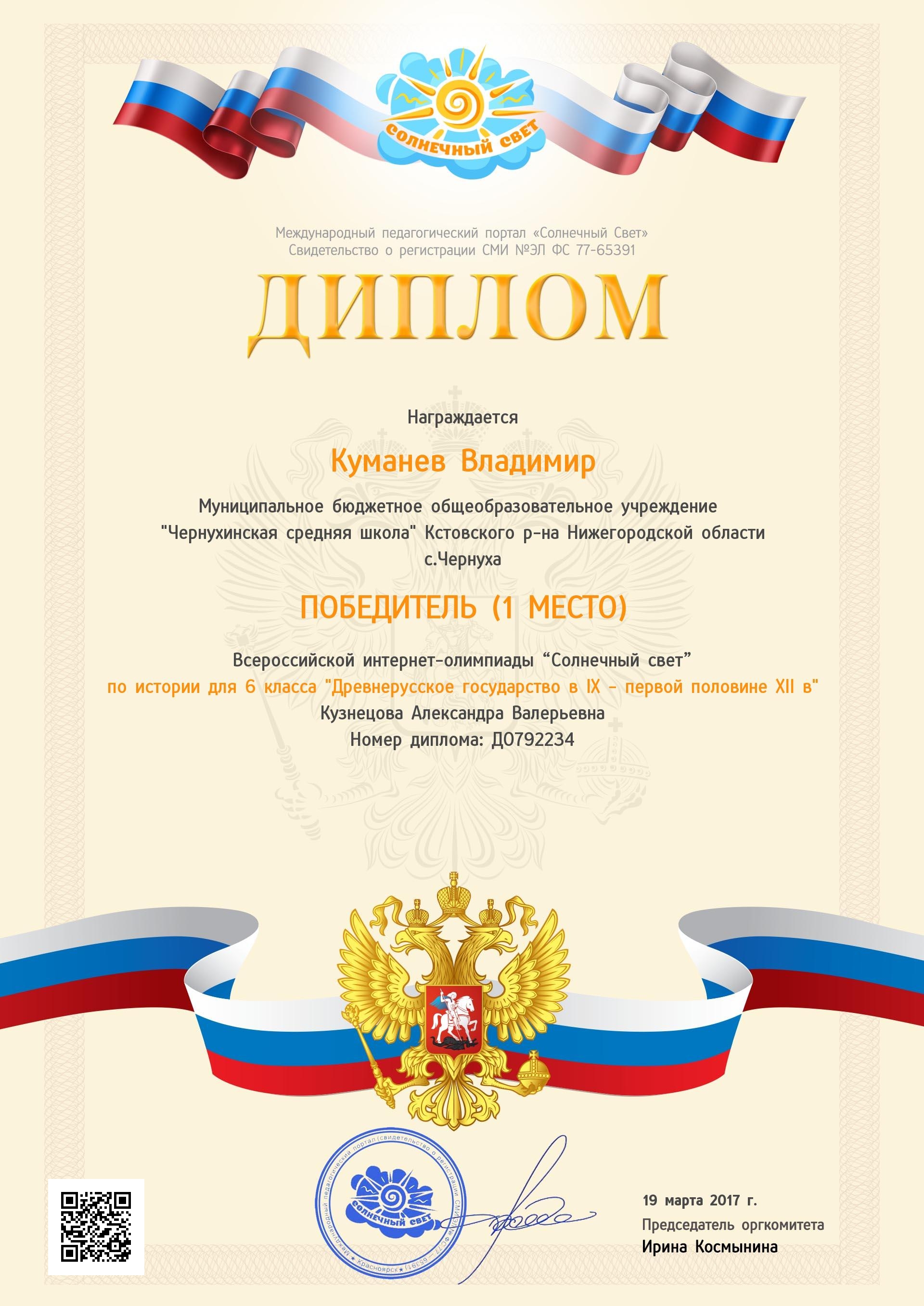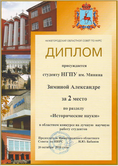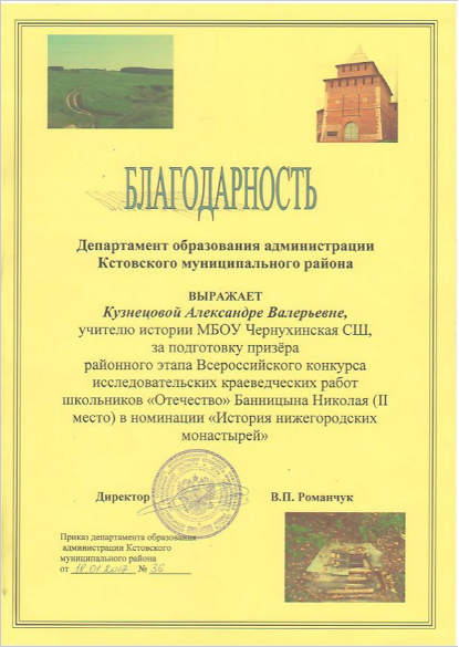 Победитель областного конкурса исследовательских краеведческих работ школьников "Отечество" Банницын Николай, ученик 11 класса. Руководитель Кузнецова А.В. 2017 г.